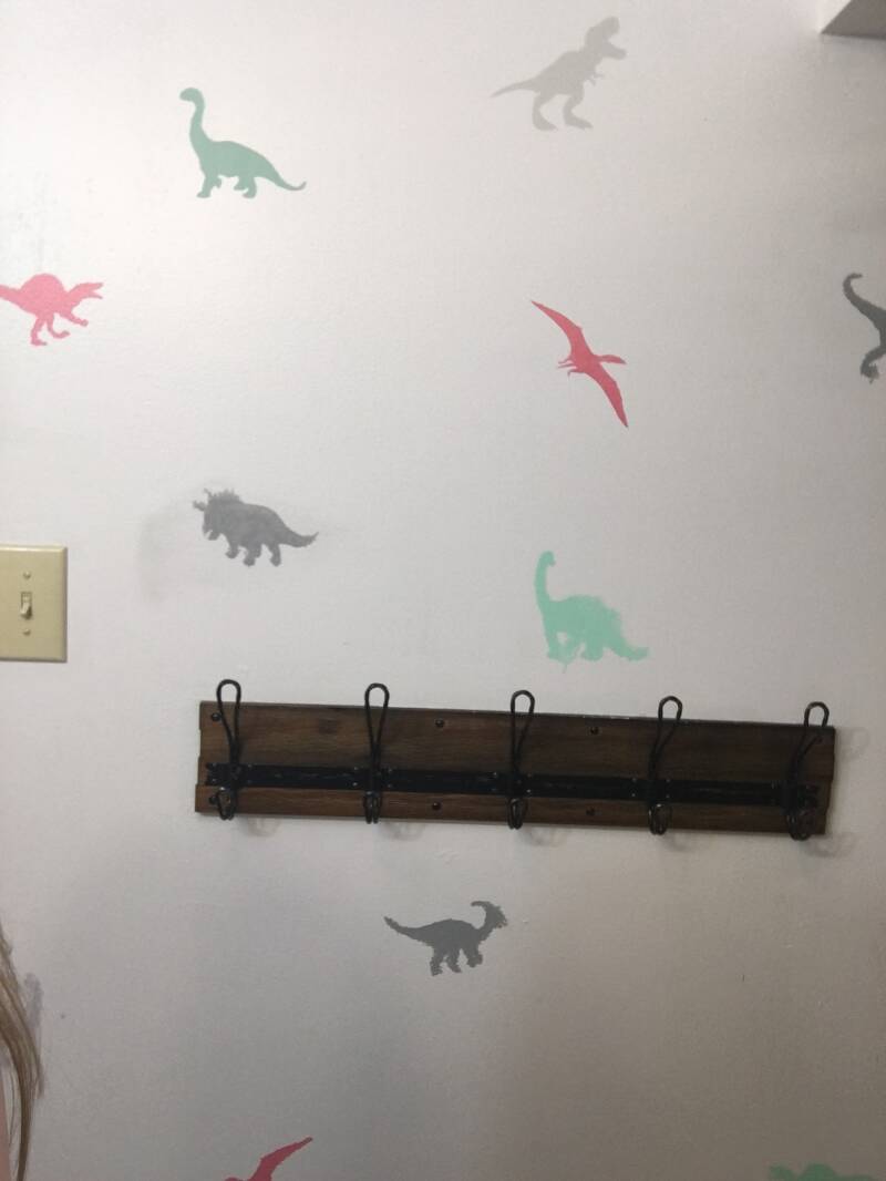 This first image is a wall I decorated in my room with multi-colored dinosaurs.