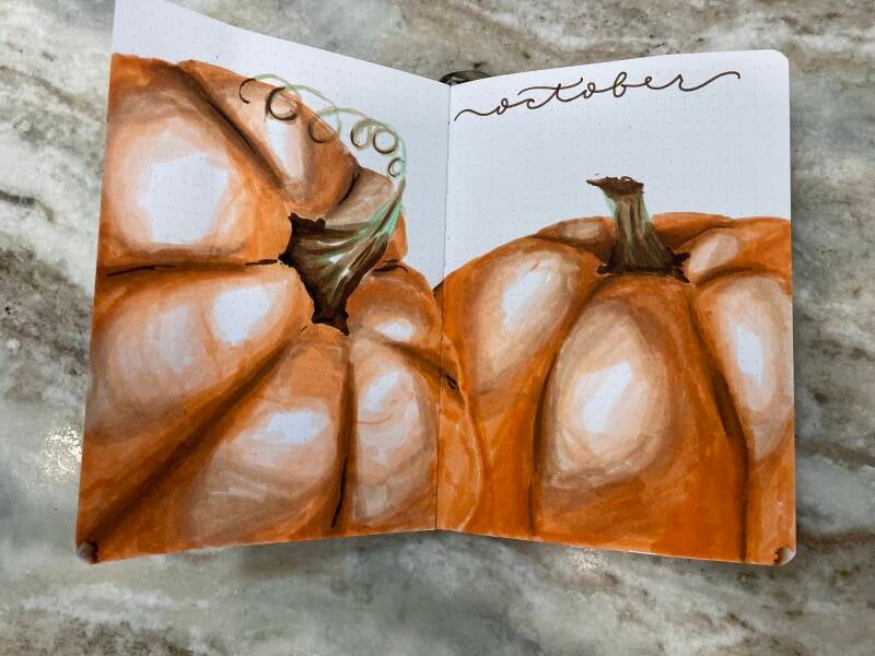 My starting page for October!! I like to pick a range of colors for the month and this month's were shades of orange, yellow, red, and a little bit of brown! But I don't have a good color skeme for November so if anybody has some good November colors lmk.