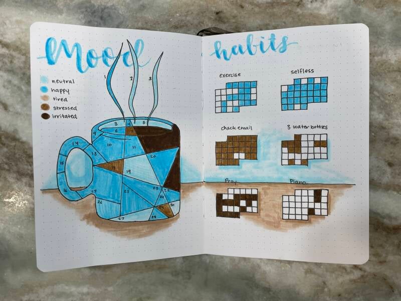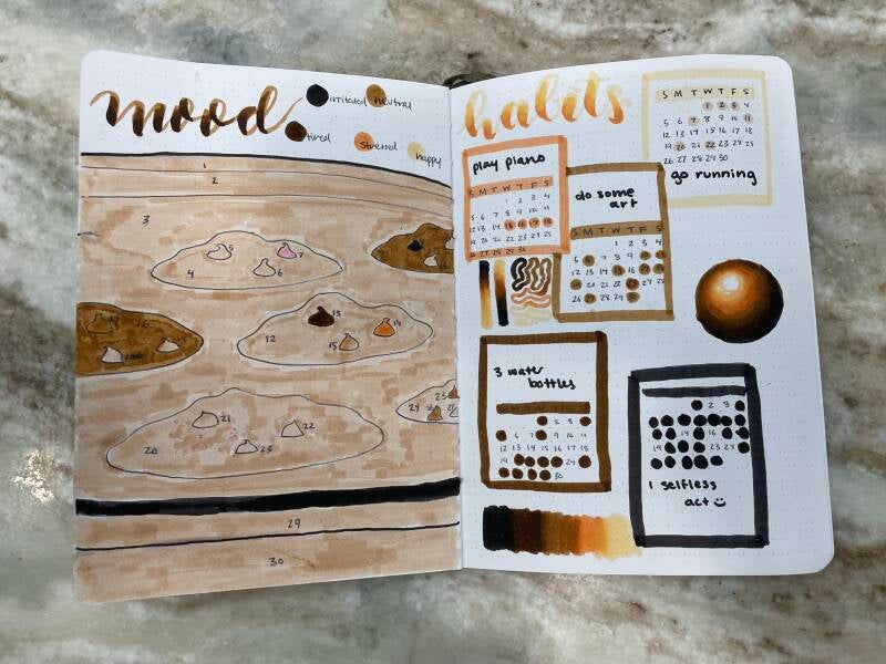 Bullet journaling is such a great way to plan out your week and doodle. I just started one in an old notebook I had laying around, but I definitely recommended using a dotted notebook or graph paper. They are such a great way to relieve stress and so fun to look back on.