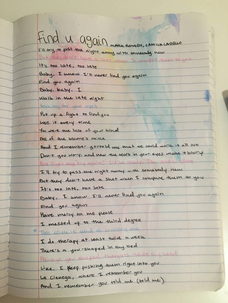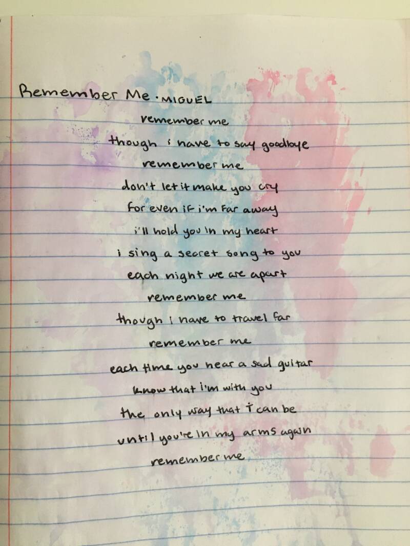 As I mentioned earlier, I love music, so I wrote down the lyrics to a few of my favorite songs. I love the watercolor look in the background.